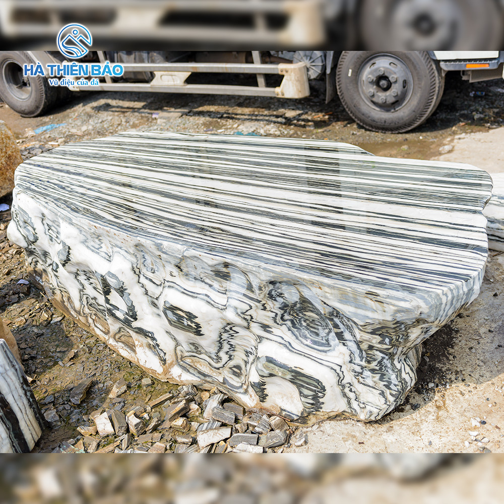 Đá tuyết sơn là đá tự nhiên, được khai thác chủ yếu từ các mỏ đá. Chúng có nhiều vân sọc trắng đen xen kẽ nổi bật. Nếu bạn nhìn những phiến đá khi chưa khai thác, thật sự sẽ không thể nhìn ra được vẻ đẹp của chúng. Chỉ khi được chia nhỏ ra, để lộ các đường vân mỹ miều mới khiến cái tên “tuyết sơn” được thể hiện hết giá trị của nó.