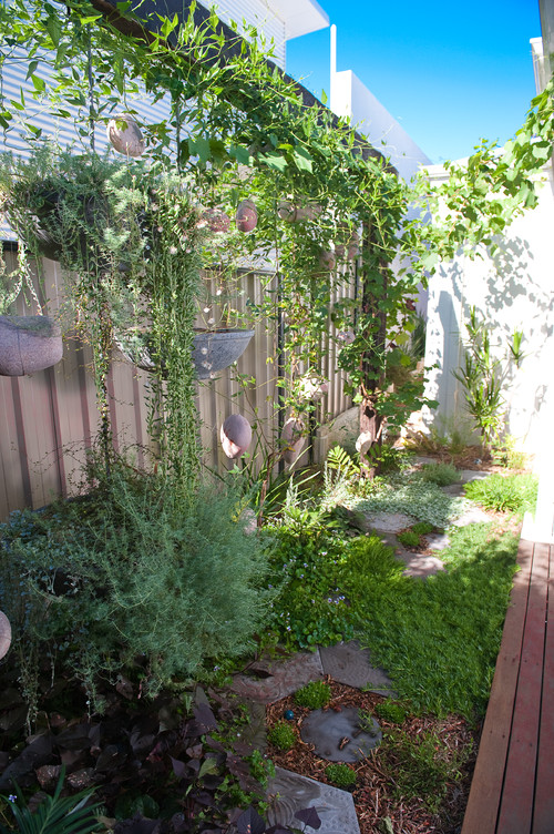 Một không gian xanh dành riêng cho kiến trúc nhà phố chỉ rộng chừng 3 – 4m chiều rộng là một ước mơ khó thành hiện thực hiện. Với không gian kiến trúc này nên tận dụng sân thượng để tạo khu vườn nhỏ làm nơi thư giãn của gia đình hoặc sum họp bạn bè vào dịp cuối tuần. Nếu chọn cách đổ đất để tạo tiểu cảnh trên sân thượng trong kiến trúc này cần phải có cả một quá trình xử lý chống thấm rất phức tạp. Do đó, vườn treo sẽ là lựa chọn tốt nhất cho nhiều người mong muốn có một khu vườn tràn ngập sắc hoa suốt bốn mùa trong năm.