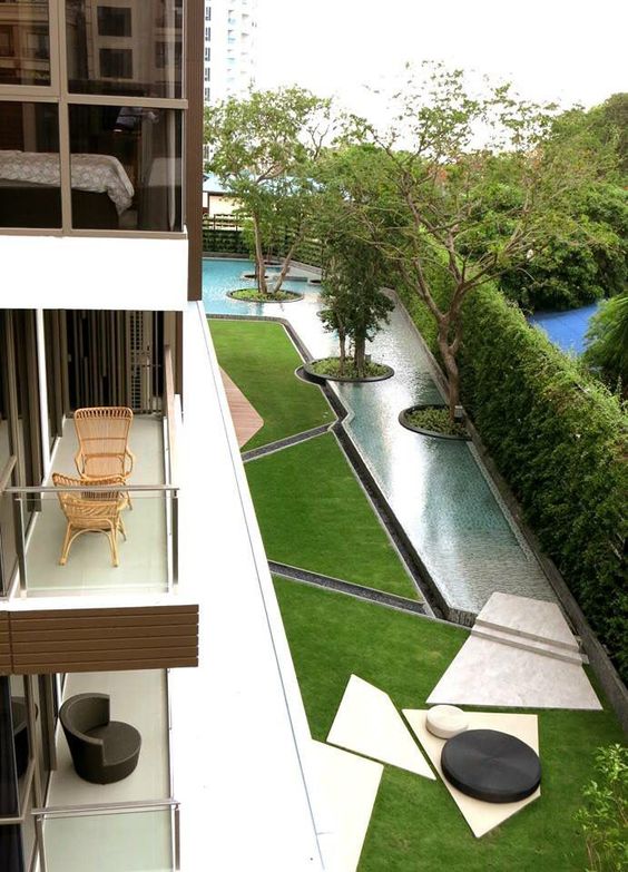 Các đường nét uốn lượn uyển chuyển hay các hình khối gọn gàng được các gia chủ sử dụng tùy thuộc vào diện tích, hình dáng của sân vườn mang lại sự phóng khoáng, sáng tạo khi lựa chọn phong cách thiết kế hiện đại này.